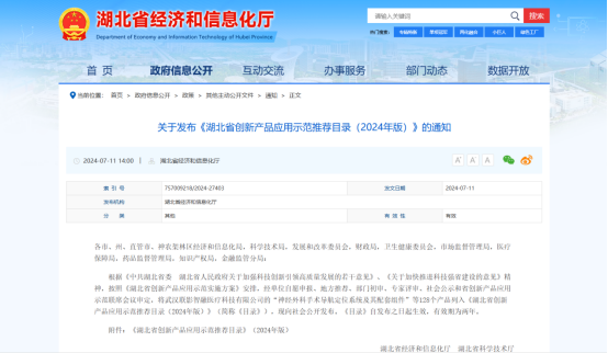 近日,由湖北省經(jīng)濟(jì)和信息化廳、湖北省科學(xué)技術(shù)廳、湖北省發(fā)展和改革委員會(huì)等單位評(píng)審?fù)ㄟ^的《2024年度湖北省創(chuàng)新產(chǎn)品應(yīng)用示范推薦目錄》公布。